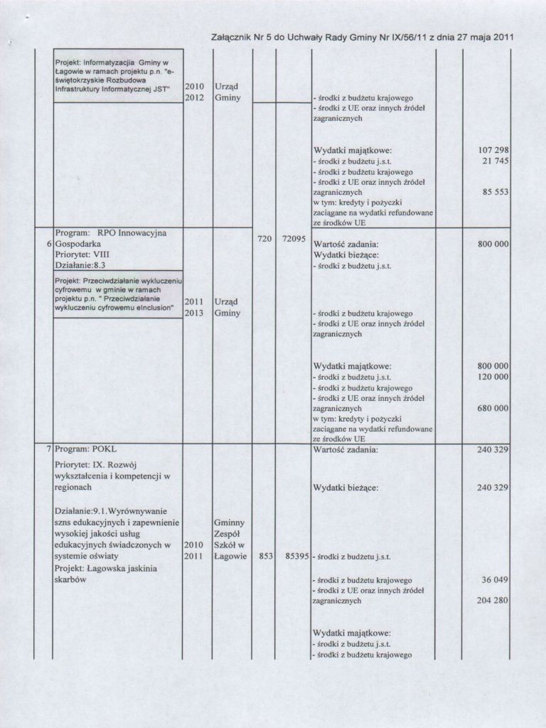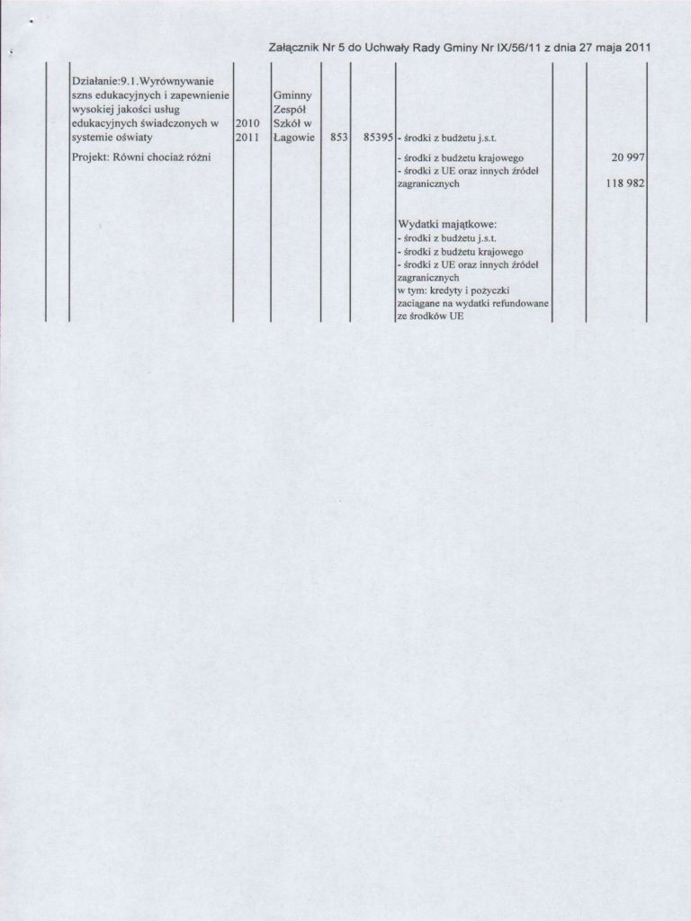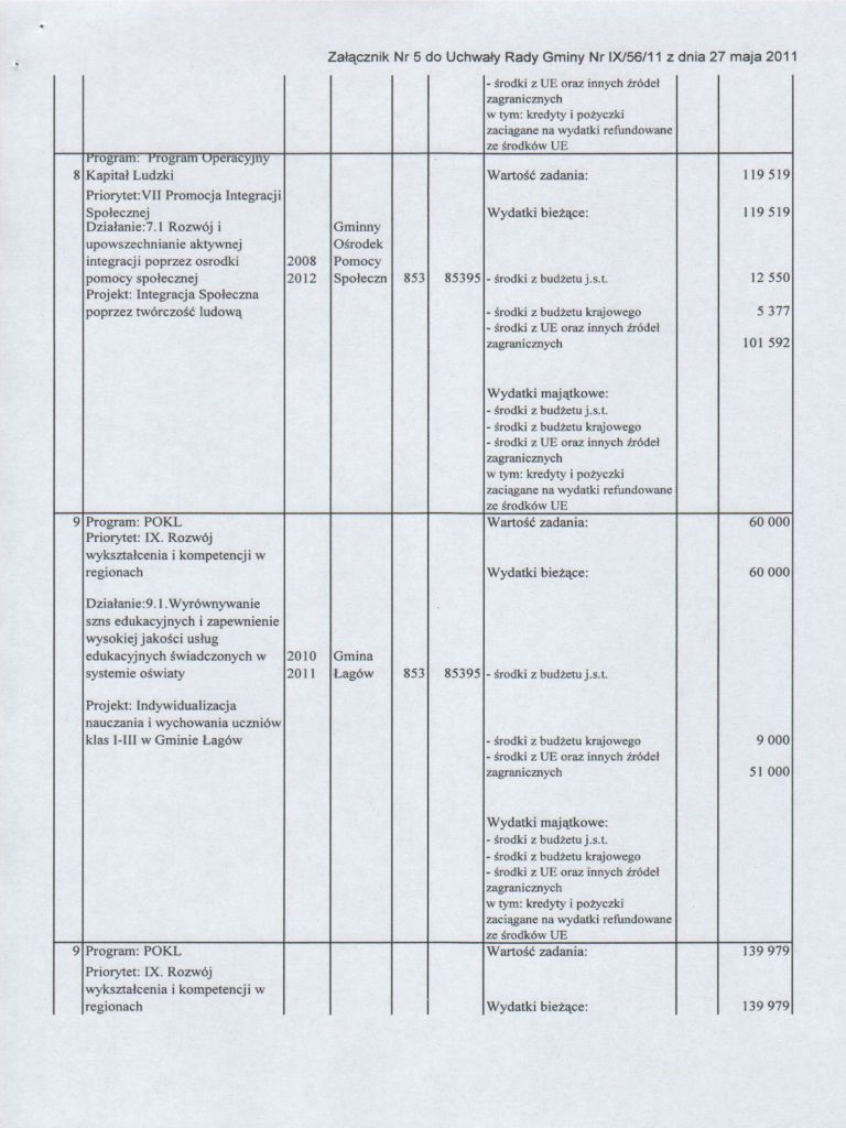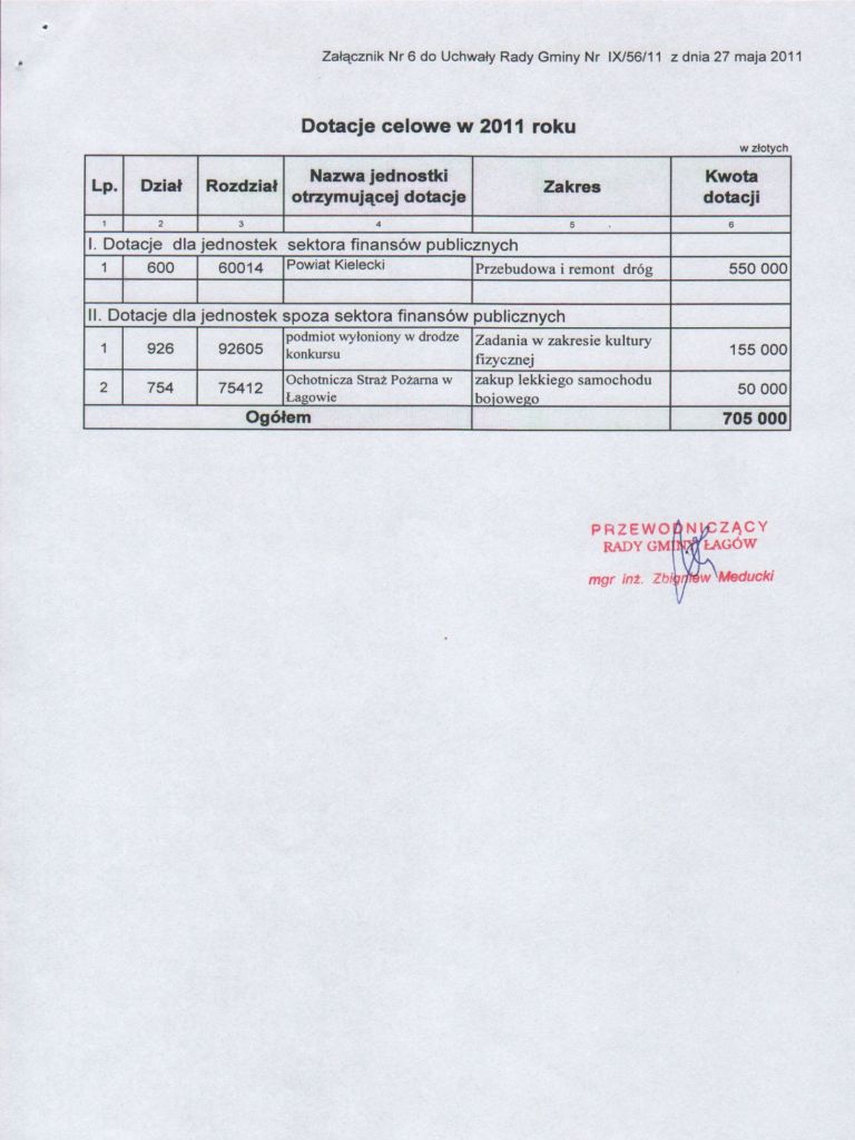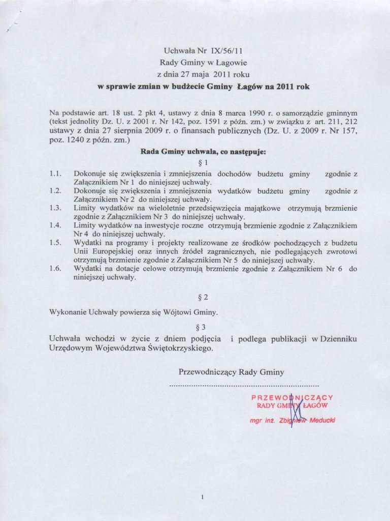 | Uchwała Nr IX/56/11 Rady Gminy w Łagowie z dnia 27 maja 2011 r. w sprawie zmian w budżecie Gminy Łagów na 2011 rok | 2011-06-14 |