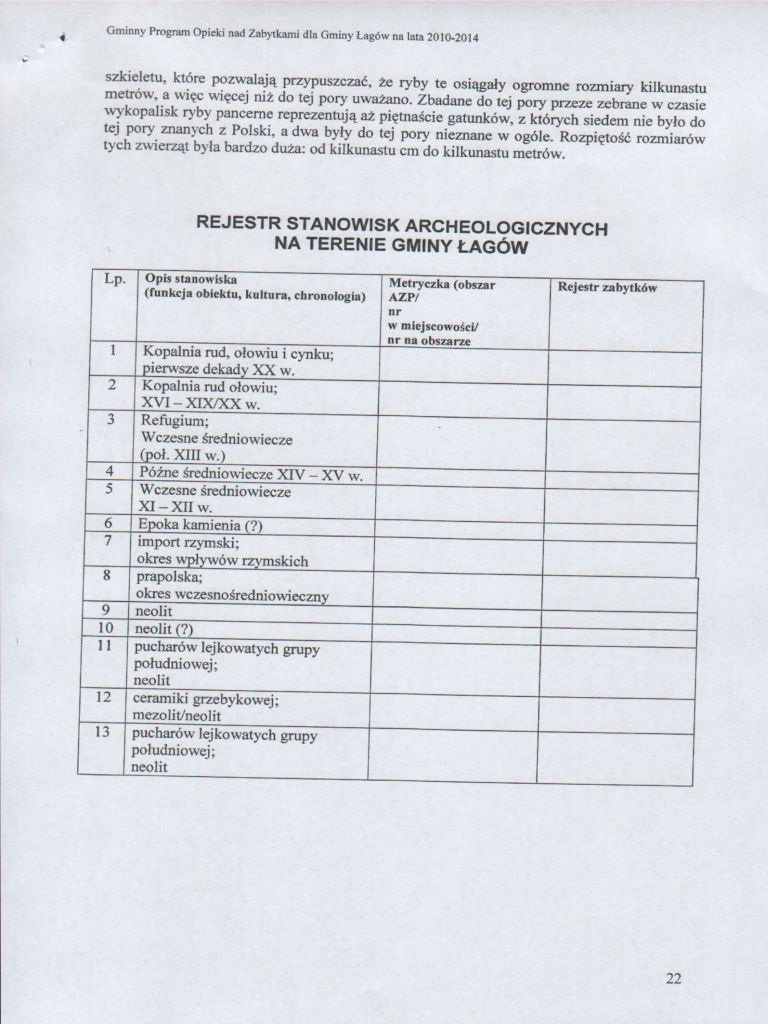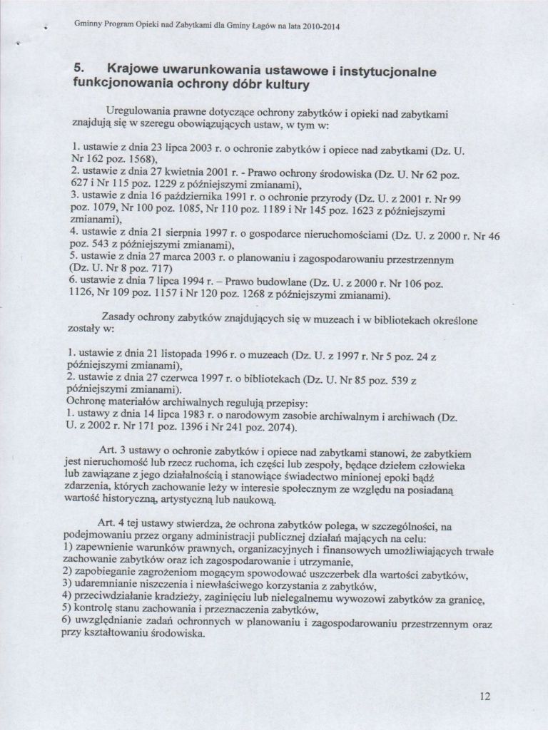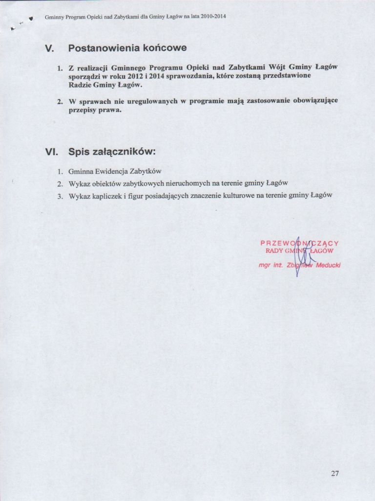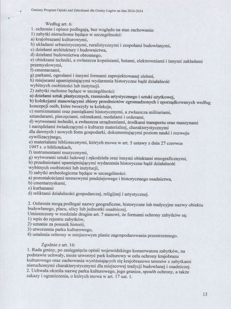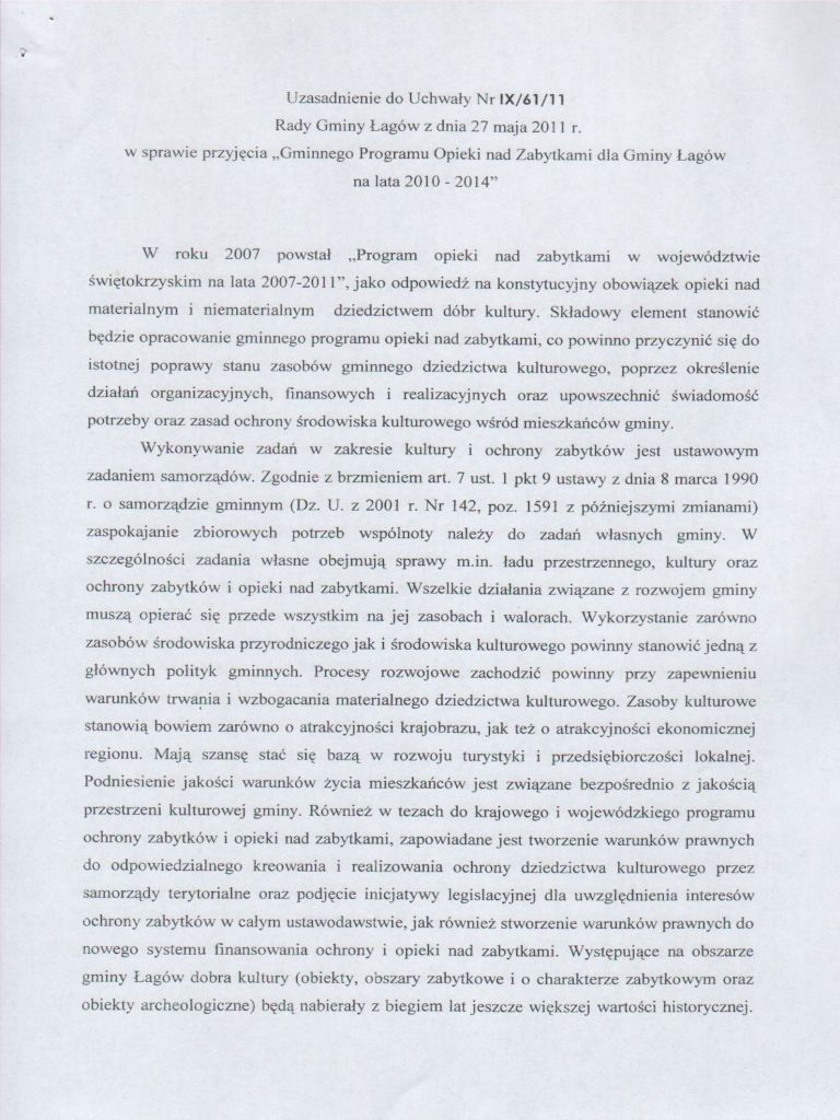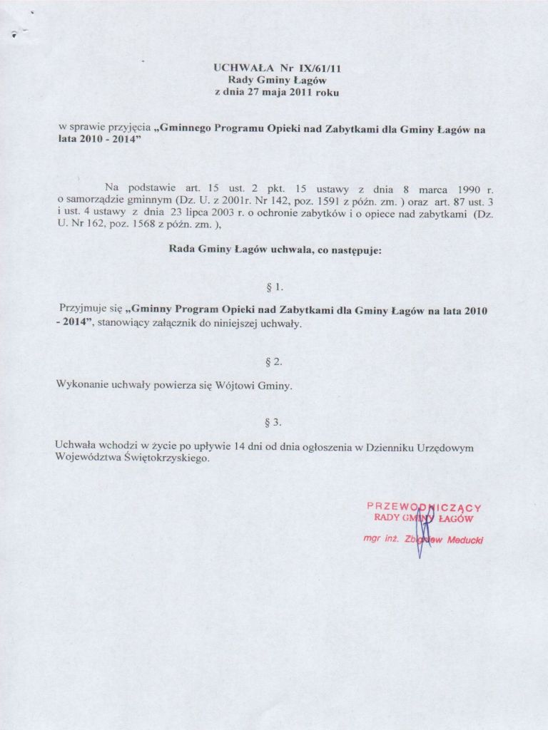 | Uchwała Nr IX/61/11 Rady Gminy Łagów z dnia 27 maja 2011 roku w sprawie przyjęcia "Gminnego Programu Opieki nad Zabytkami dla Gminy Łagów na lata 2010 - 2014" | 2011-06-15 |