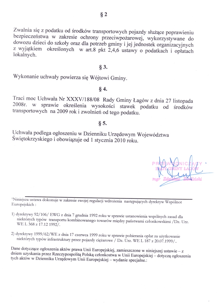 | Uchwała Nr LI/290/09 Rady Gminy Łagów z dnia 15 grudnia 2009r. w sprawie określenia wysokości stawek podatku od środków transportowych na 2010 rok i zwolnieĂą od tego podatku. | 2009-12-22 |