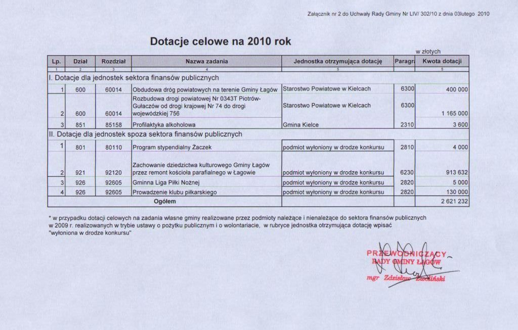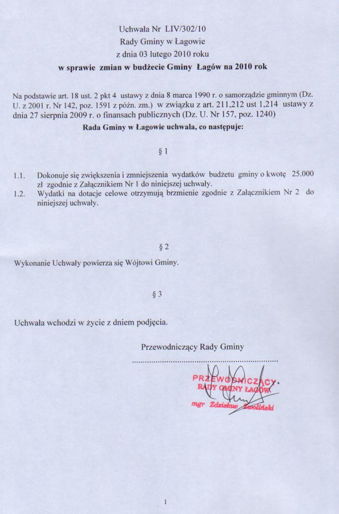 | Uchwała nr LIV/302/2010 Rady Gminy Łagów z dnia 3 lutego 2010 r. w sprawie zmian w budżecie Gminy Łagów na 2010 rok | 2010-02-09 |