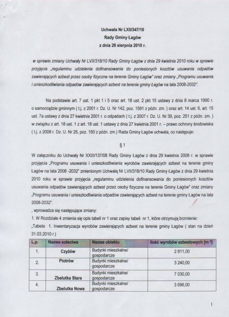 | Uchwała Nr LXII/348/10 Rady Gminy Łagów z dnia 26 sierpnia 2010 r. w sprawie zmiany Uchwały LVII/318/10 Rady Gminy Łagów z dnia 29 kwietnia 2010 r. | 2010-09-08 |