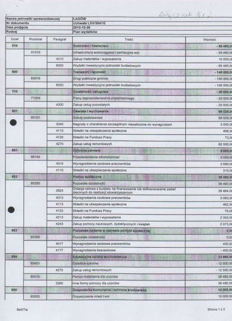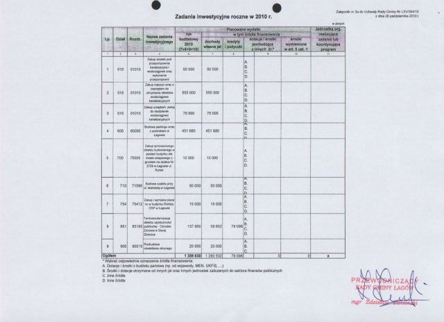 | Uchwała Nr LXV/363/10 Rady Gminy w Łagowie z dnia 28 października 2010 r. w sprawie zmian w budżecie Gminy Łagów na 2010 r. | 2010-11-29 |