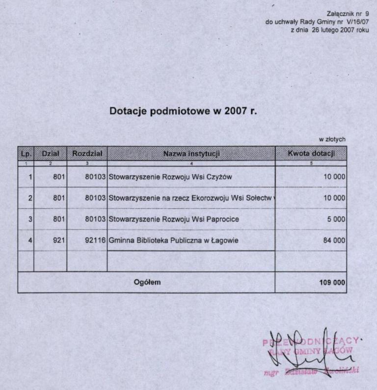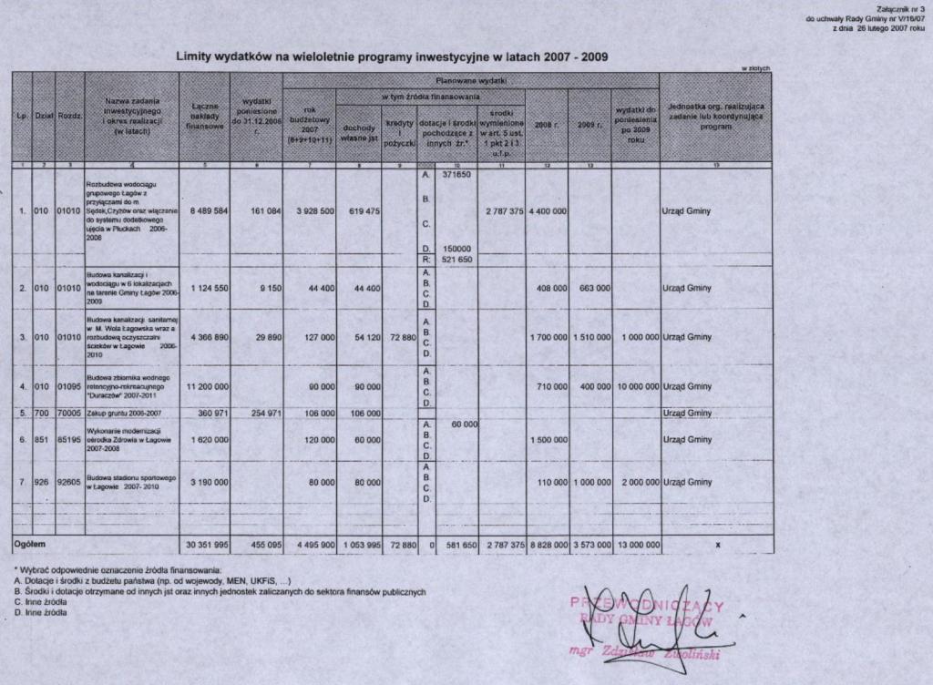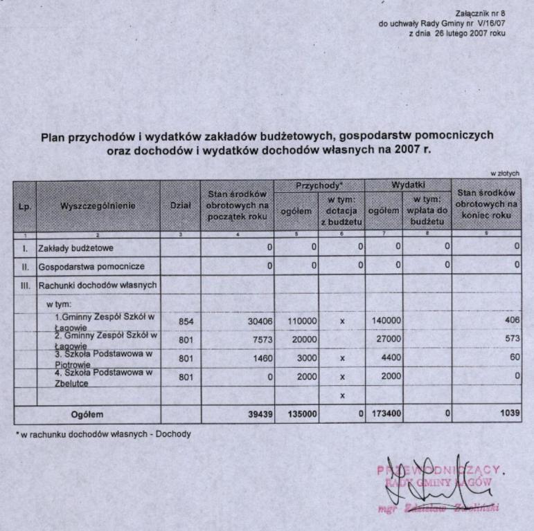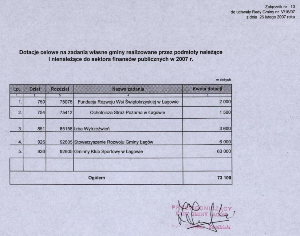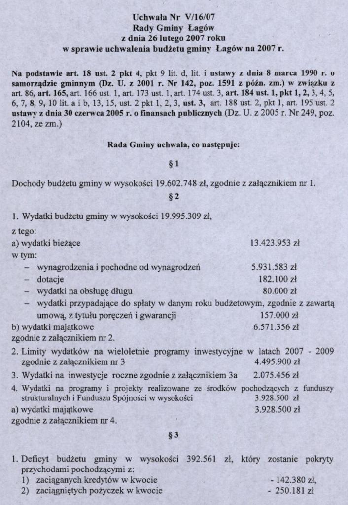 | Uchwała nr V/16/07 Rady Gminy Łagów z dnia 26 stycznia 2007 r. w sprawie uchwalenia budżetu gminy Łagów na 2007 r. | 2008-08-14 |