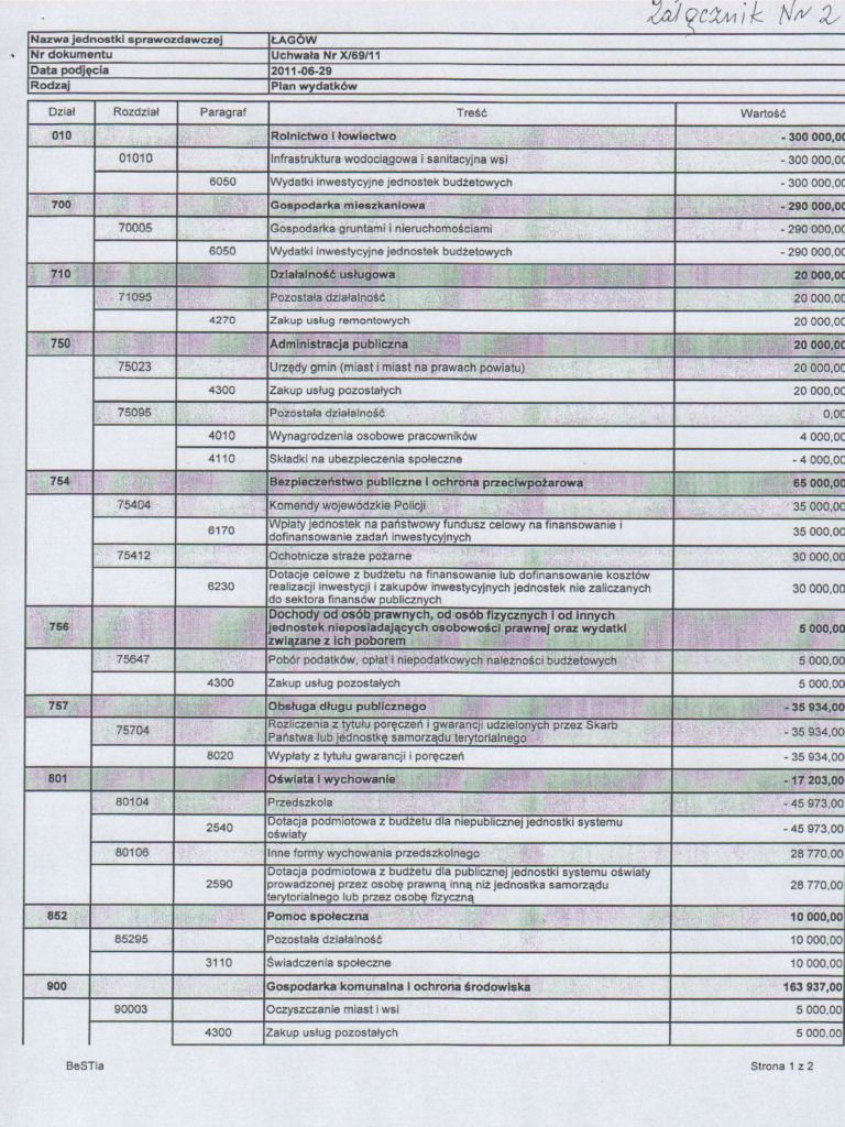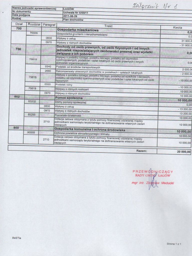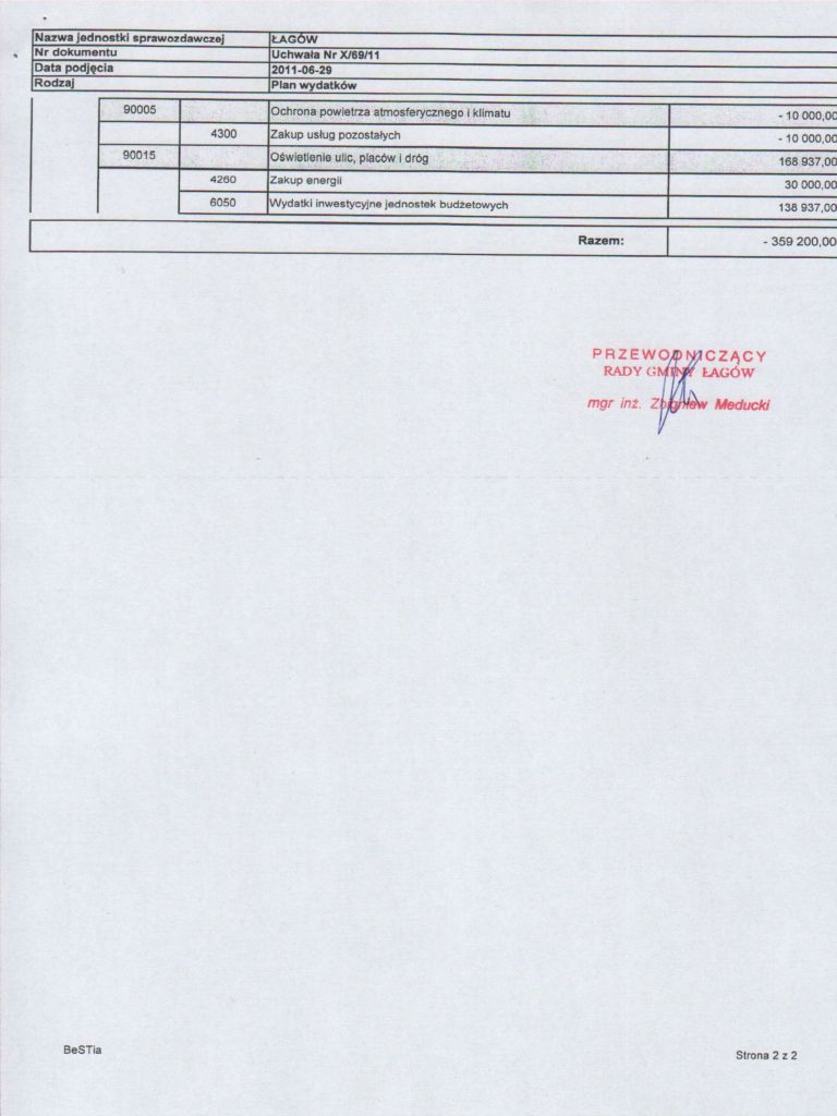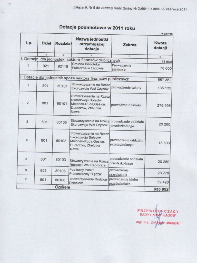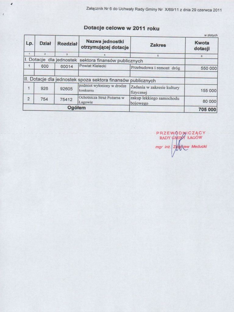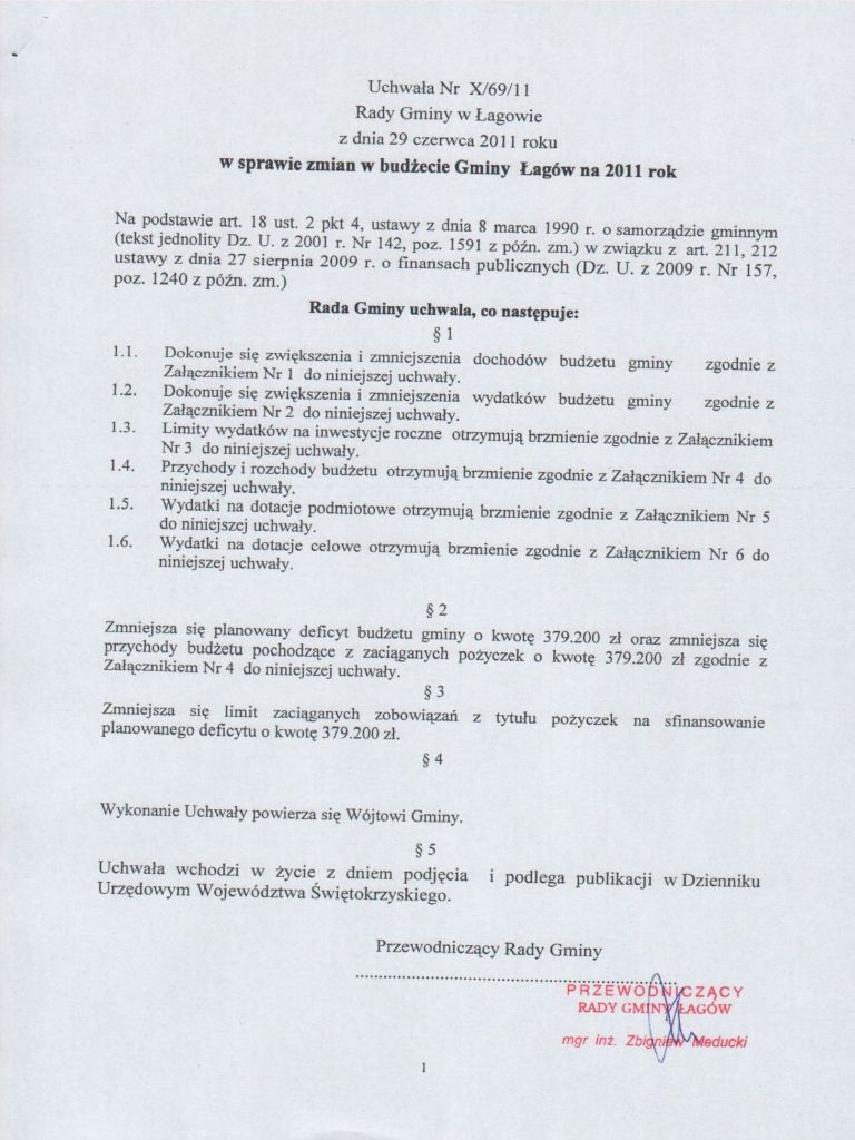 | Uchwała Nr X/69/11 Rady Gminy w Łagowie z dnia 29 czerwca 2011 roku w sprawie zmian w budżecie Gminy Łagów na 2011 rok | 2011-07-06 |