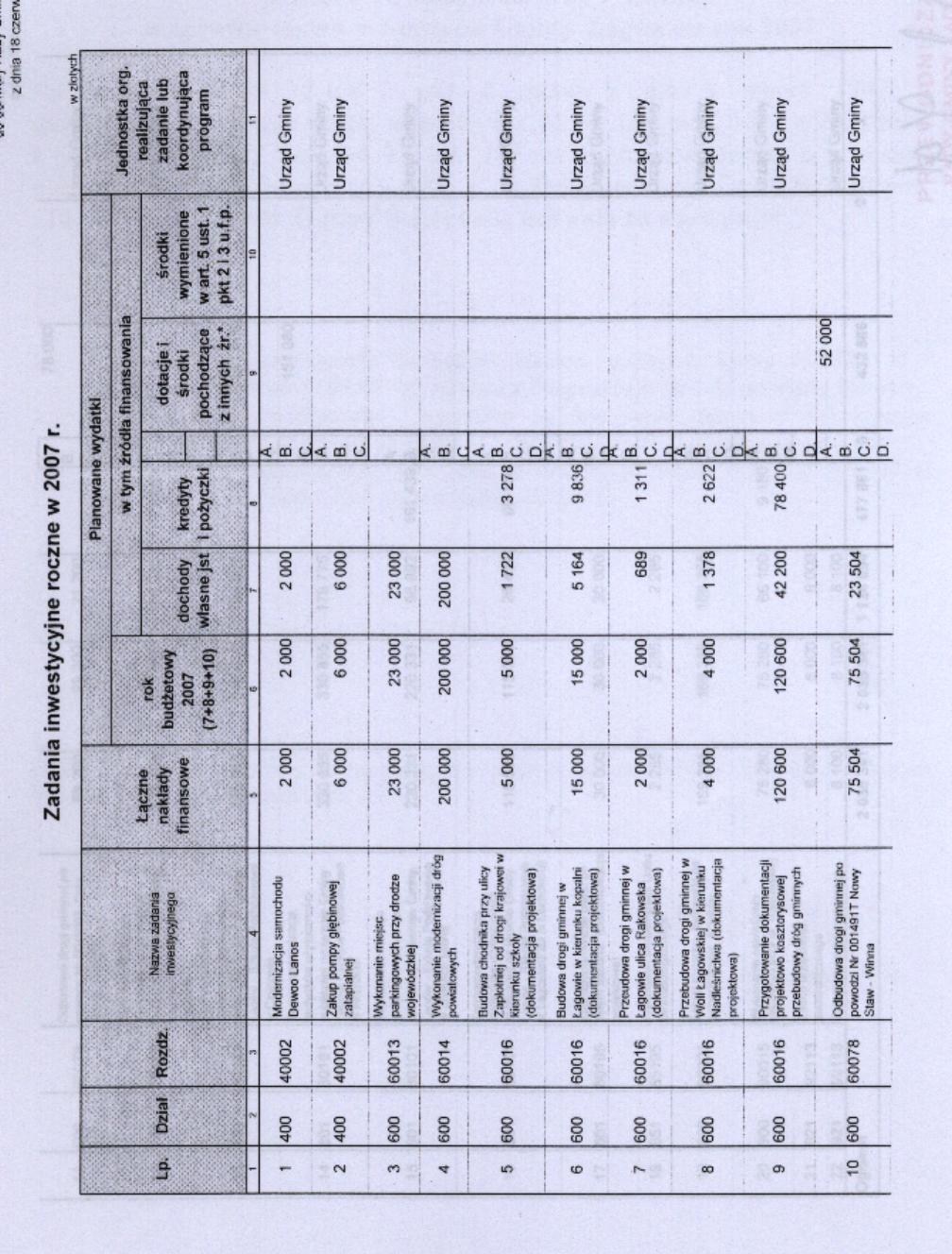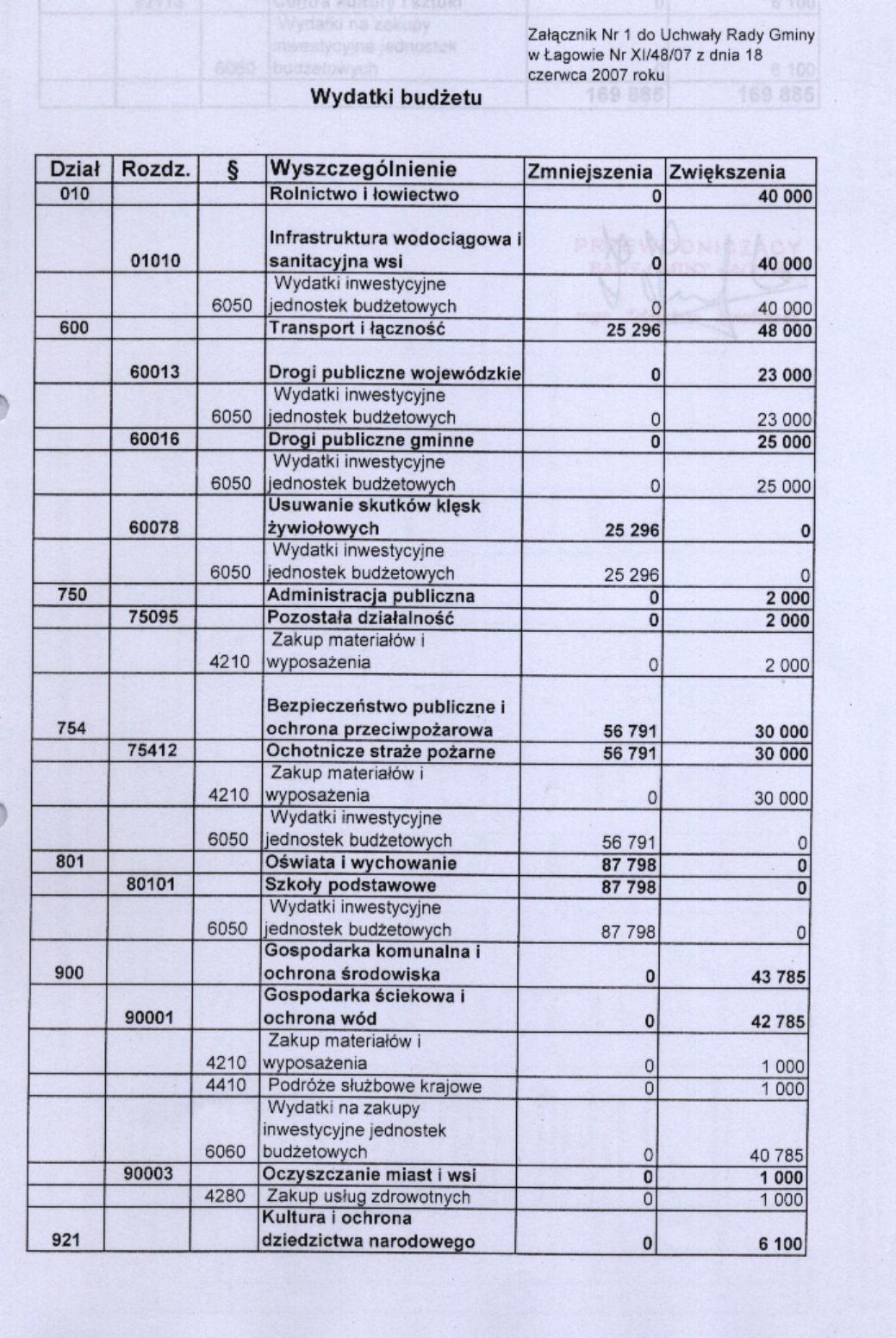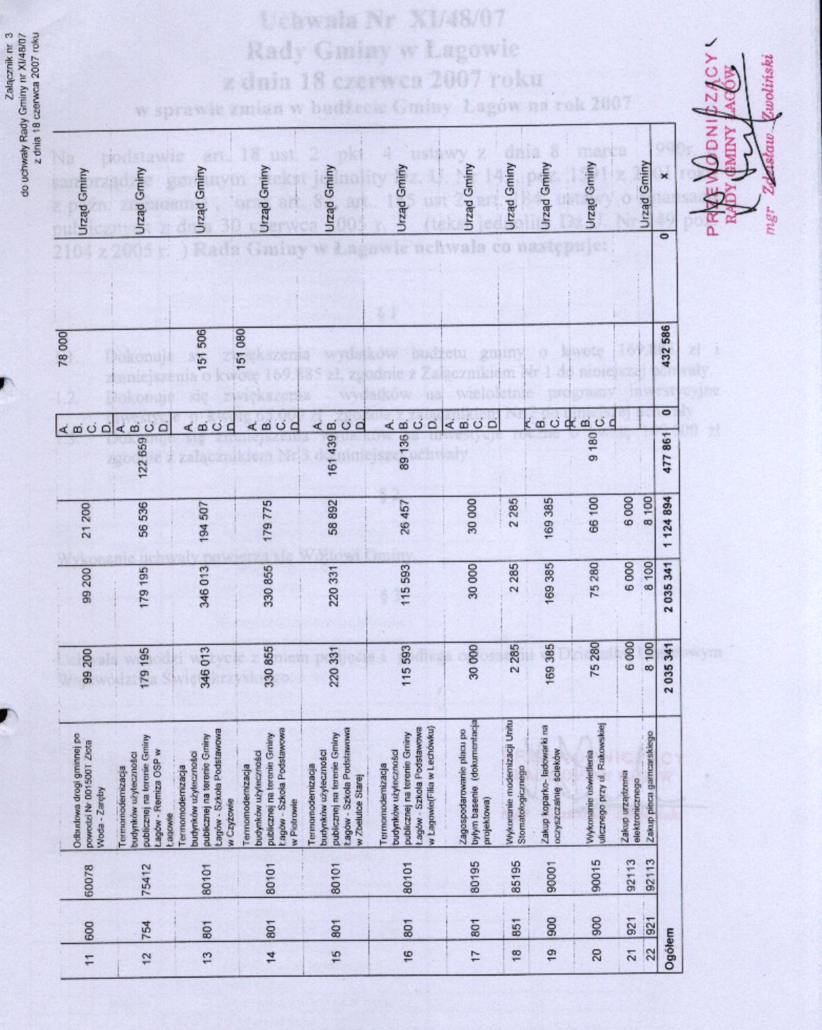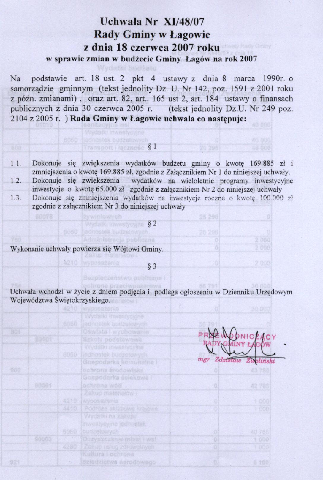 | Uchwała nr XI/48/07 Rady Gminy Łagów z dnia 18 czerwca 2007 r. w sprawie zmian w budżecie gminy Łagów na rok 2007 | 2008-08-26 |