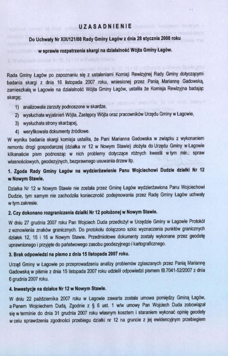 | Uchwała nr XIX/121/08 Rady gminy Łagów z dnia 28 stycznia 2008 r. w sprawie rozpatrzenia skargi na działalność Wójta Gminy Łagów | 2008-08-14 |