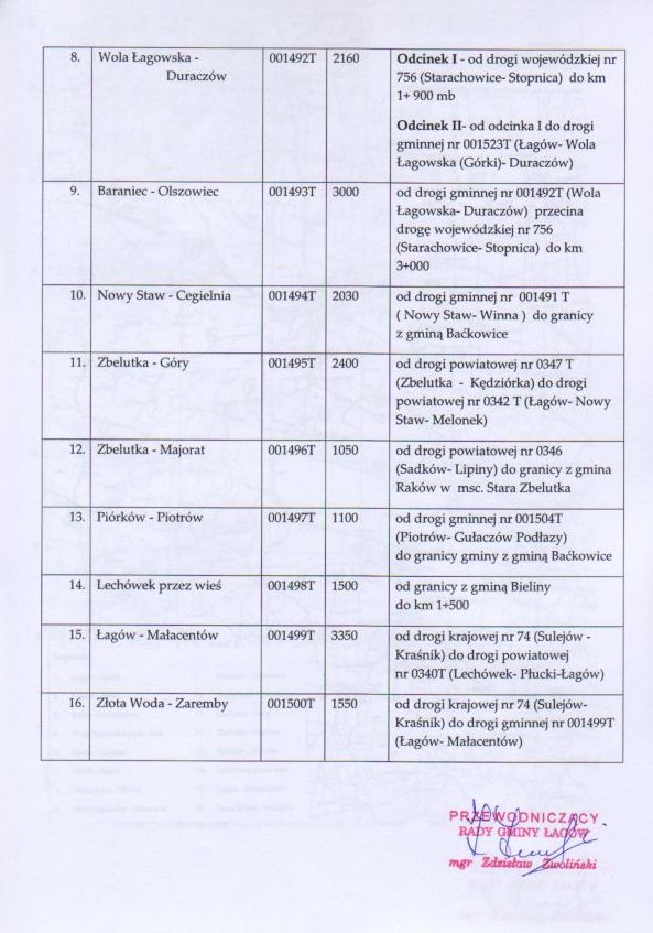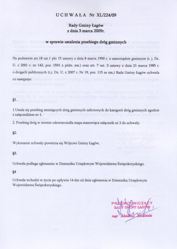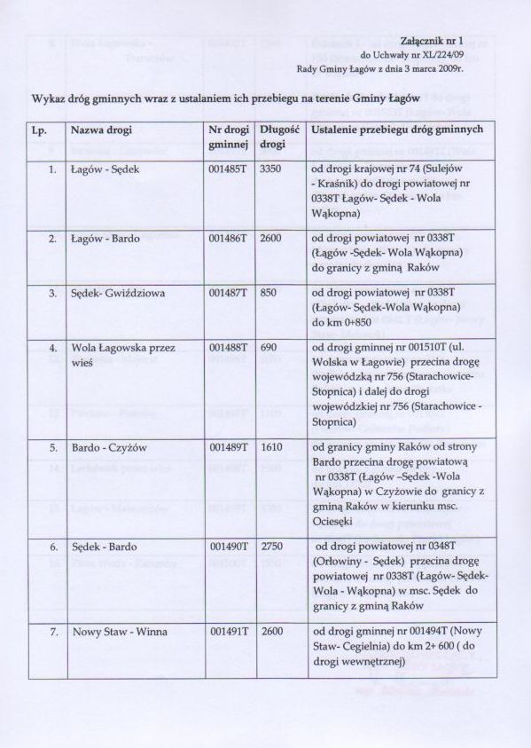 | Uchwała Nr XL/224/09 Rady Gminy w Łagowie z dn. 3 marca 2009 r. w sprawie ustalenia przebiegu dróg gminnych. | 2009-03-12 |
