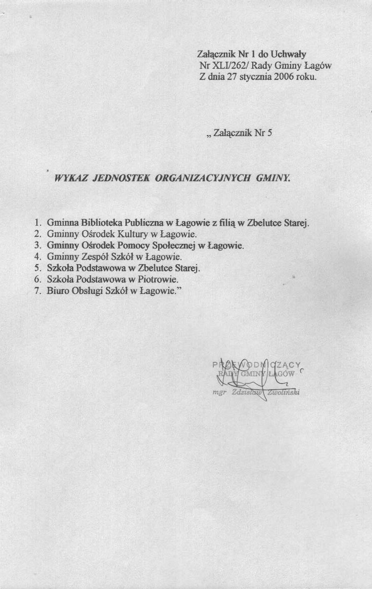| Uchwała nr XLI/262/06 Rady Gminy Łagów z dn. 27 stycznia 2006 r. w sprawie zmiany statutu gminy Łagów. | 2008-10-02 |