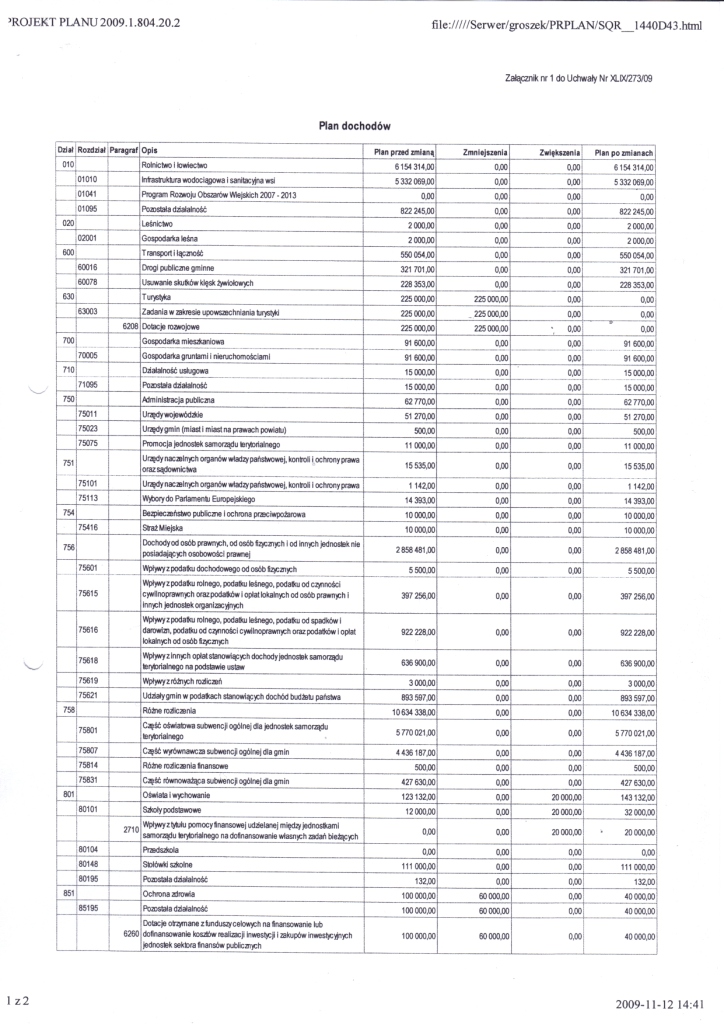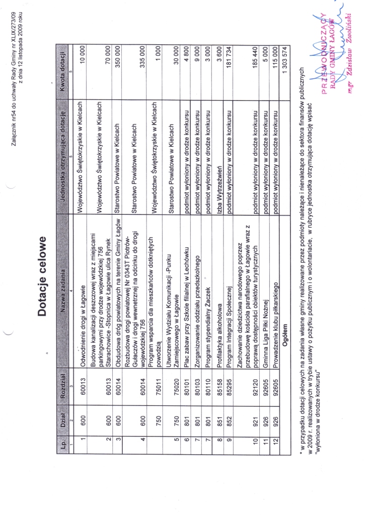 | Uchwała Nr XLIX/273/09 Rady Gminy Łagów z dnia 12 listopada 2009r. w sprawie zmian w Budżecie Gminy Łagów na rok 2009 | 2009-11-19 |