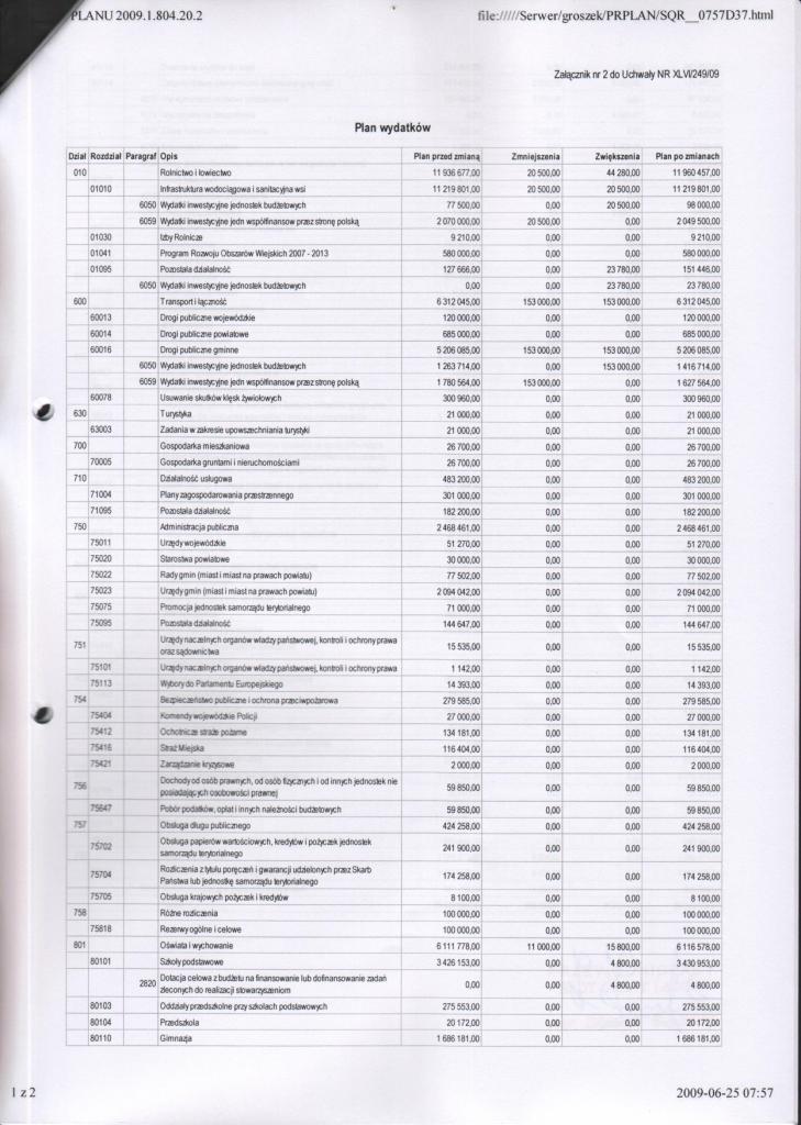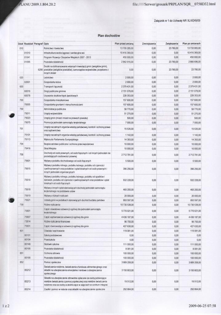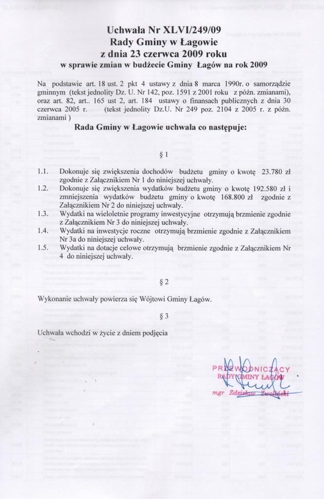 | Uchwała nr XLVI/249/09 Rady Gminy Łagów z dnia 23 czerwca 2009r. w sprawie zmian w budżecie Gminy Łagów na rok 2009 | 2009-07-20 |