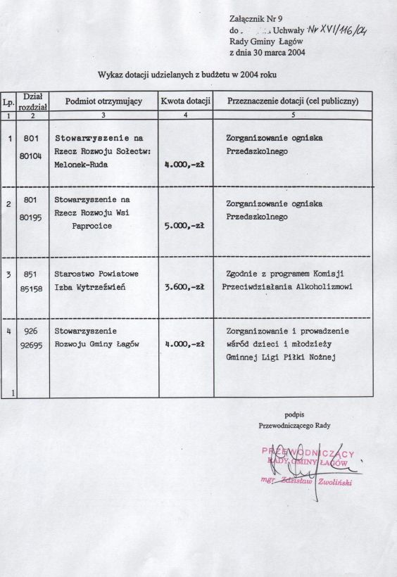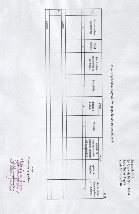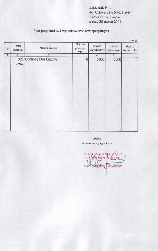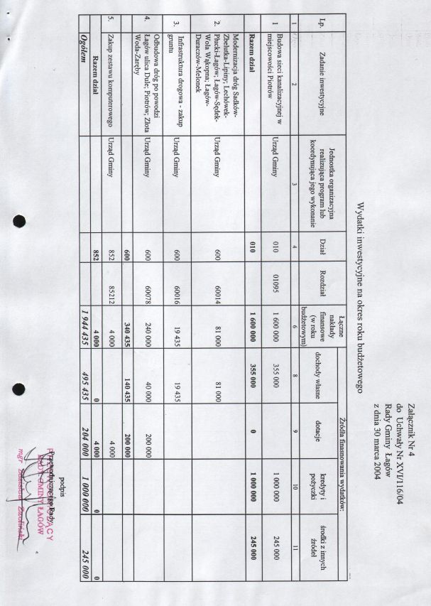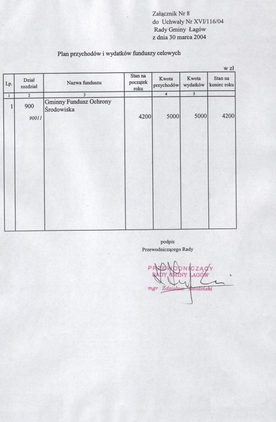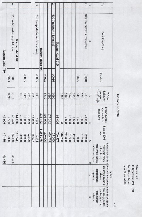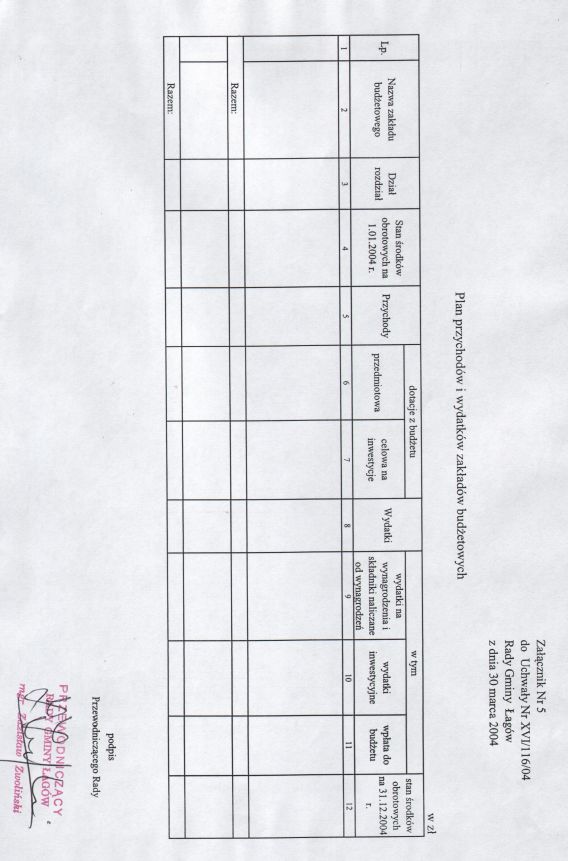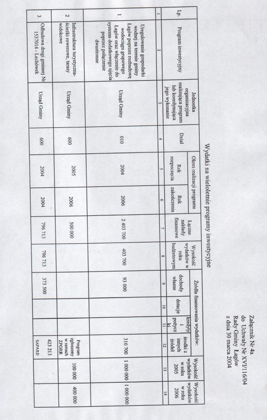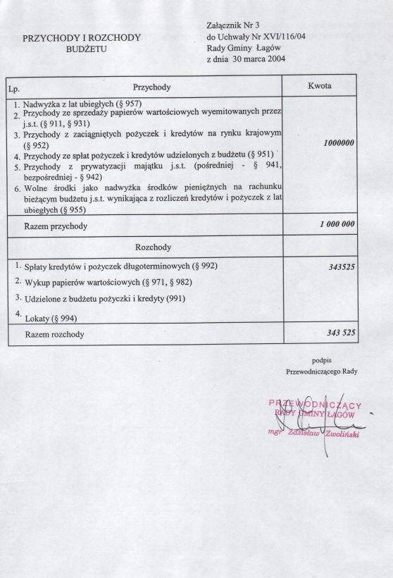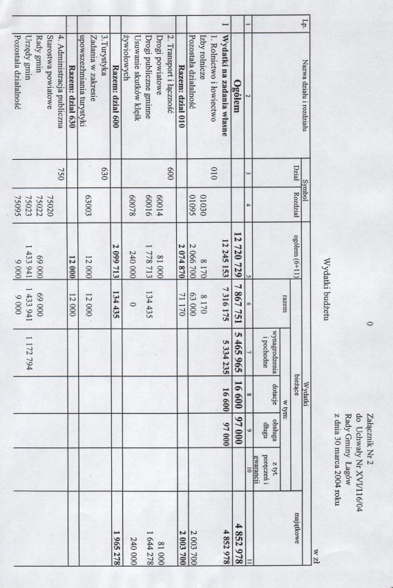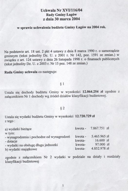 | Uchwała nr XVI/116/04 Rady Gminy w Łagowie z dn. 30 marca 2004 r. w sprawie uchwalenie budżetu Gminy Łagów na 2004 rok. | 2008-10-22 |