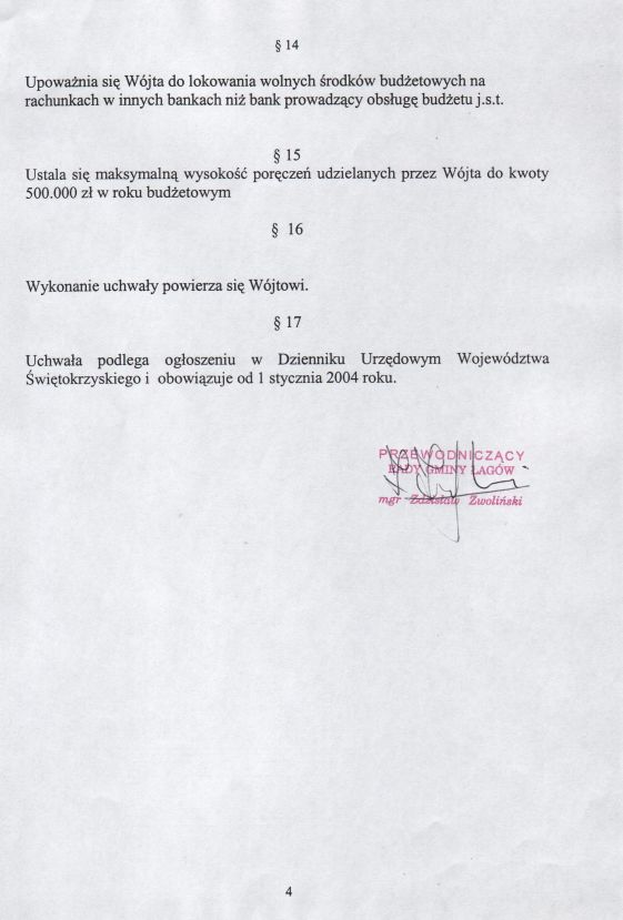![]() Uchwała nr XVI/116/04 str. 1 zapisz drukuj | ![]() Uchwała nr XVI/116/04 str. 2 zapisz drukuj | ![]() Uchwała nr XVI/116/04 str. 3 zapisz drukuj | ![]() Uchwała nr XVI/116/04 str. 4 zapisz drukuj |