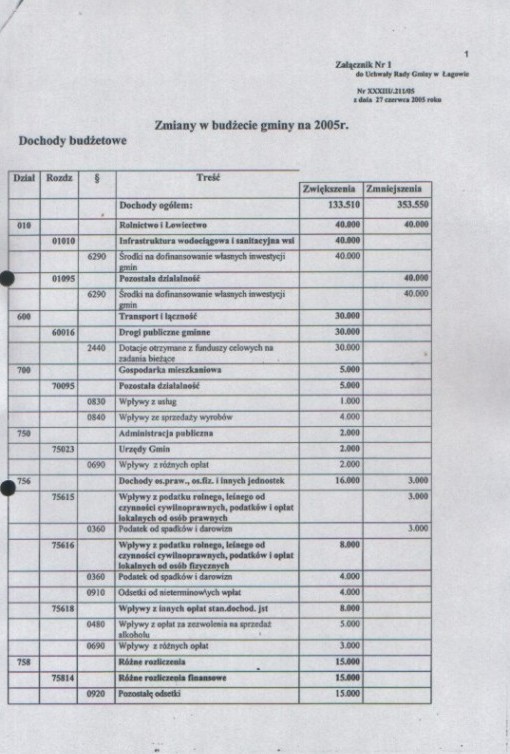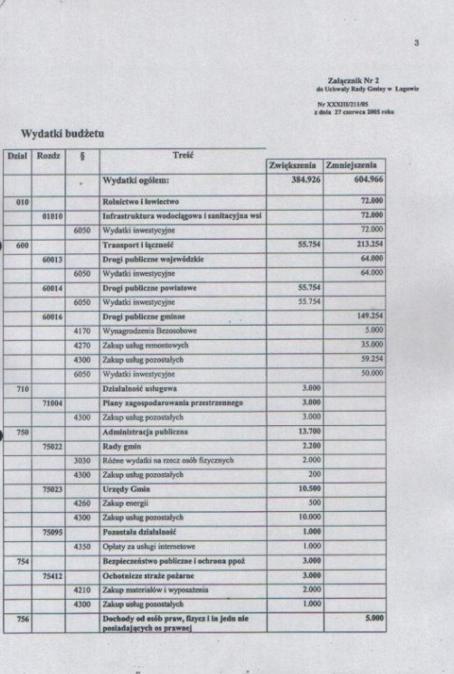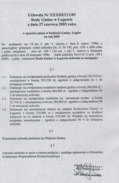 | Uchwała nr XXXIII/211/05 Rady Gminy w Łagowie z dn. 27 czerwca 2005 r. w sprawie zmian w budżecie Gminy Łagów na rok 2005. | 2008-10-17 |