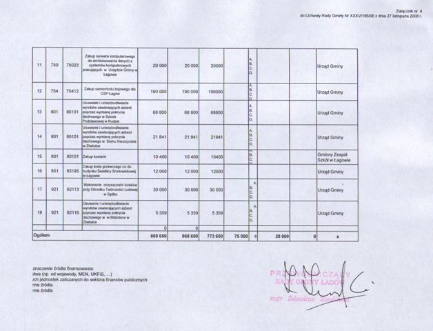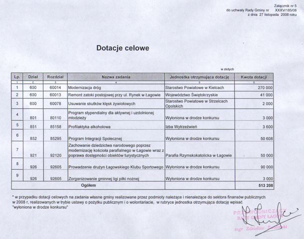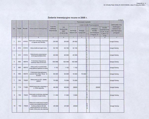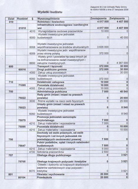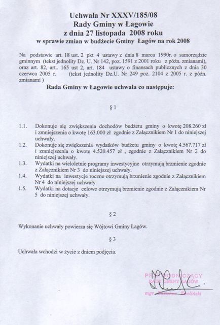 | Uchwała Nr XXXV/185/08 Rady Gminy w Łagowie z dnia 27 listopada 2008 roku sprawie zmian w budzecie Gminy Łagów na 2008 | 2008-12-03 |
