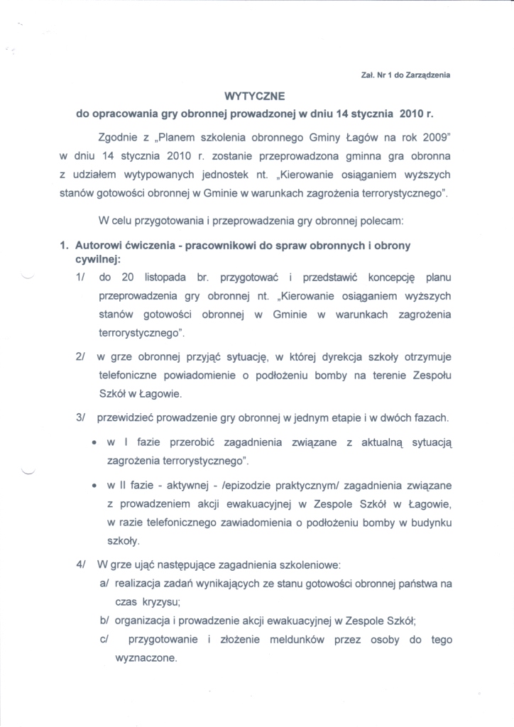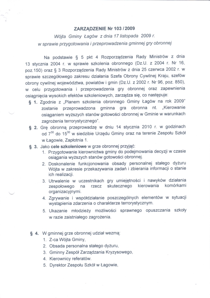 | Zarządzenie Nr 103/09 Wójta Gminy Łagów z dnia 17 listopada 2009r. w sprawie przygotowania i przeprowadzenia gminnej gry obronnej | 2009-12-24 |