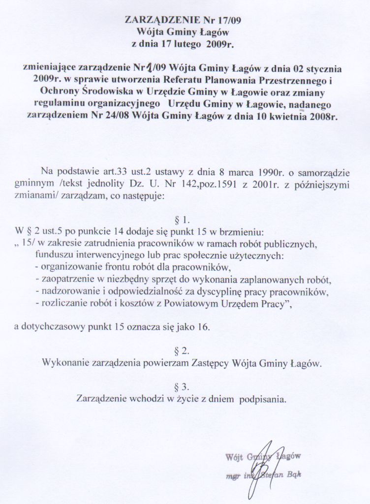 | Zarządzenie nr 17/09 Wójta Gminy Łagów z dnia 17 lutego 2009 r. zmieniające zarządzenie nr 1/09 z dnia 2 stycznia 2009... | 2009-06-10 |