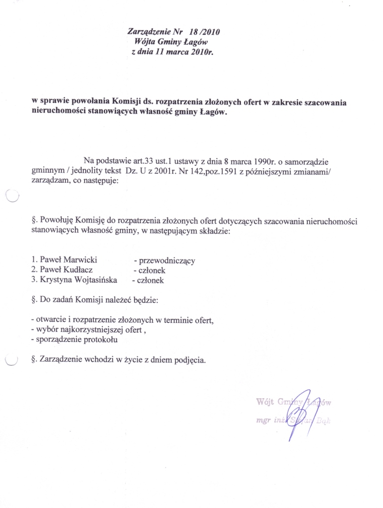 | Zarządzenie Nr 18/2010 Wójta Gminy Łagów z dnia 11 marca 2010r. | 2010-05-14 |