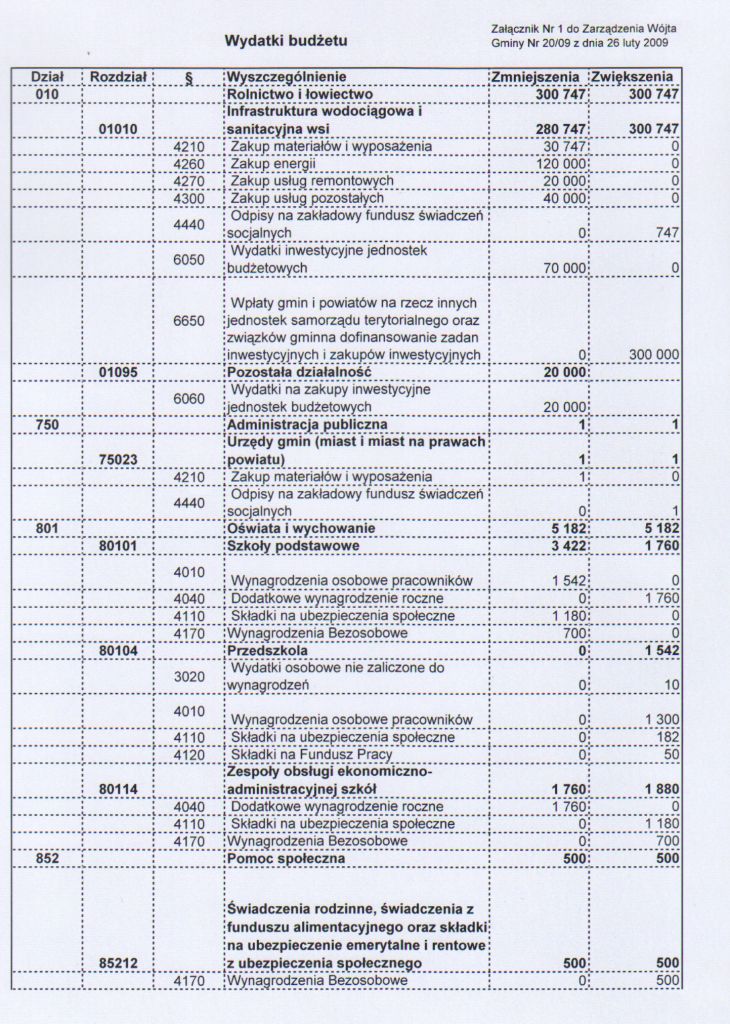 | Zarządzenie nr 20/09 Wójta Gminy Łagów z dnia 26 lutego 2009 r. w sprawie zmian w budżecie Gminy Łagó na rok 2009 | 2009-06-12 |