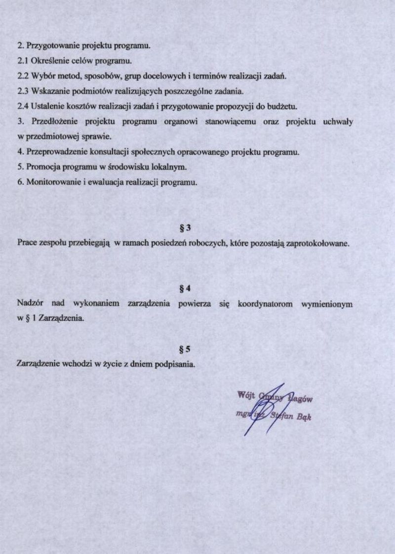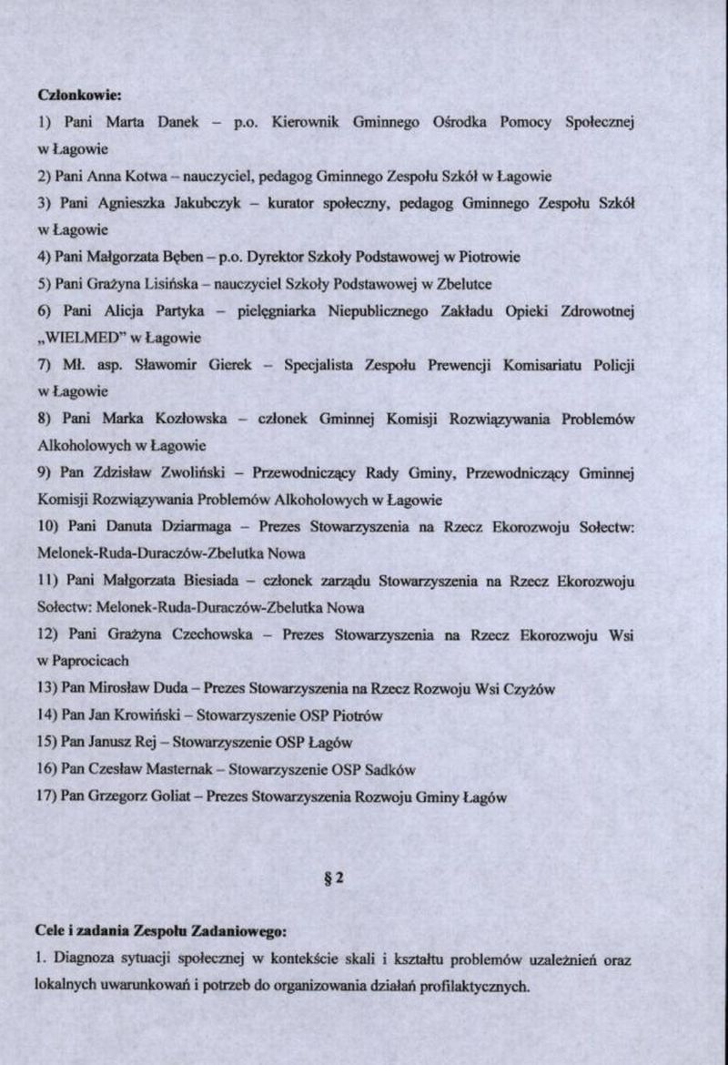 | Zarządzenie nr 24/07 Wójta Gminy Łagów z dn. 30 kwietnia 2007 r. w sprawie powołania Zespołu Zadaniowego, w celu opracowania Gminnego Programu Przeciwdziałania Narkomanii na lata 2007-2011. | 2008-08-25 |