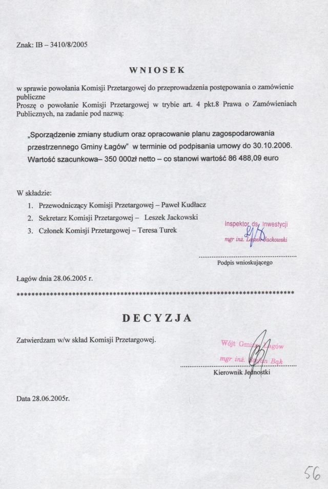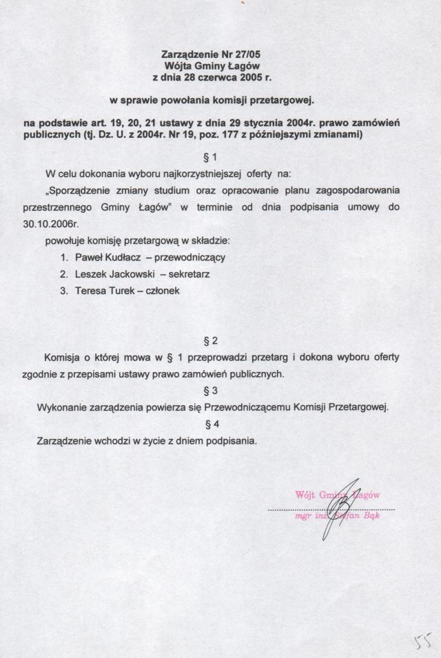 | Zarządzenie nr 27/05 Wójta Gminy Łagów z dn. 28 czerwca 2005 r. w sprawie powołania komisji przetargowej. | 2008-10-17 |