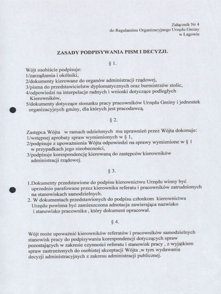 ![]() Załącznik Nr 4 do Regulaminu Organizacyjnego Urzędu Gminy w Łagowie zapisz drukuj | ![]() Zarządzenie Nr 47/11 Wójta Gminy Łagów s.42 zapisz drukuj |