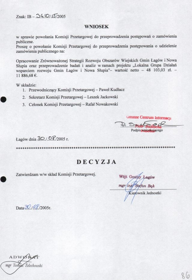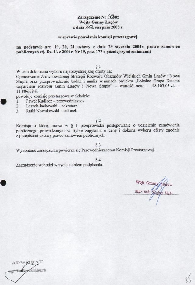 | Zarządzenie nr 49/05 Wójta Gminy Łagów z dn. 30 sierpnia 2005 r. w sprawie powołania komisji przetargowej. | 2008-10-17 |