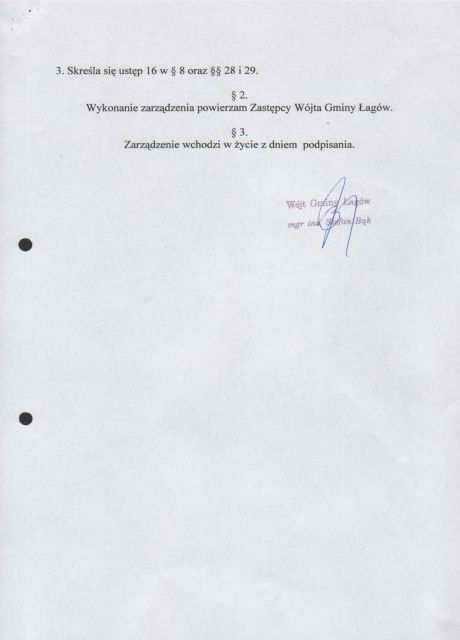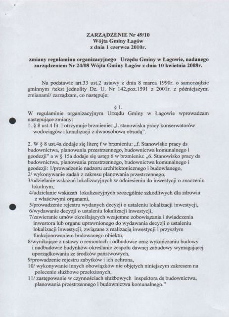 | Zarządzenie Nr 49/10 Wójta Gminy Łagów z dnia 1 czerwca 2010 r. w sprawie zminay regulaminu organizacyjnego Urzędu Gminy w Łagowie, nadanego Zarządzeniem Nr 24/08 Wójta Gminy Łagów z dnia 10 kwietnia 2008 r. | 2010-09-07 |