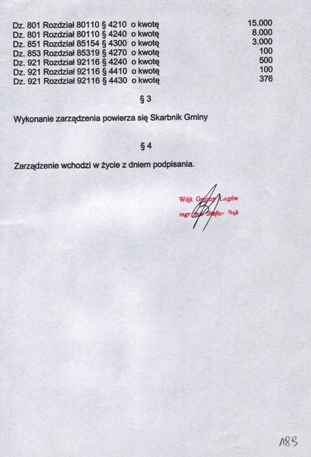 | Zarządzenie nr 72/03 Wójta Gminy Łagów z dn. 17 listopad 2003 r. w sprawie zmian w budżecie na 2003 r. | 2008-10-23 |