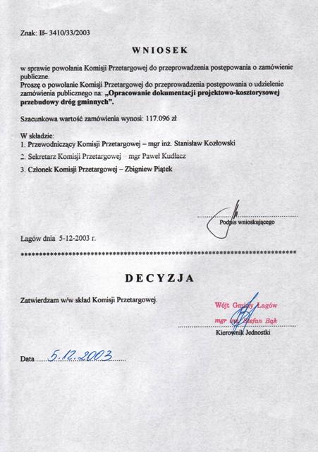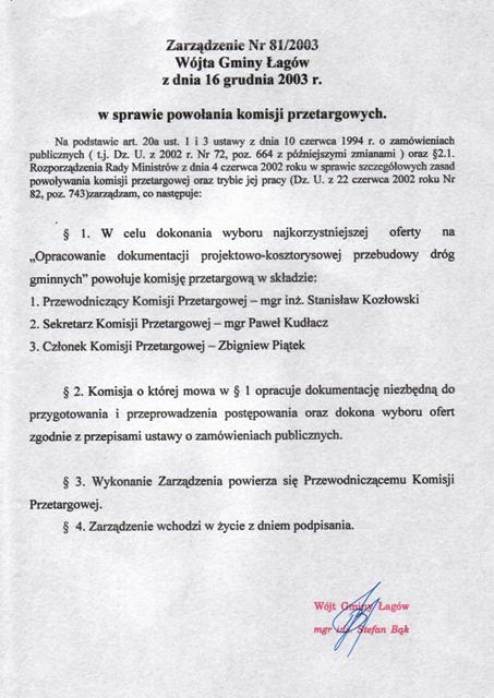 | Zarządzenie nr 81/03 Wójta Gminy Łagów z dn. 16 grudnia 2003 r. w sprawie powołania komisji przetargowych. | 2008-10-23 |