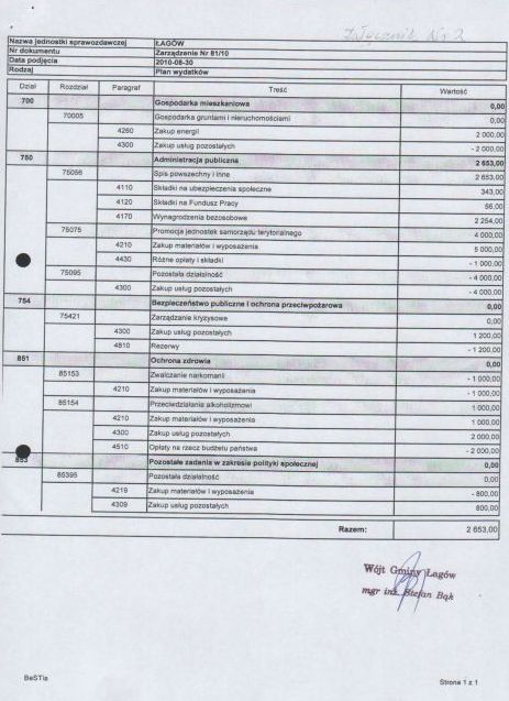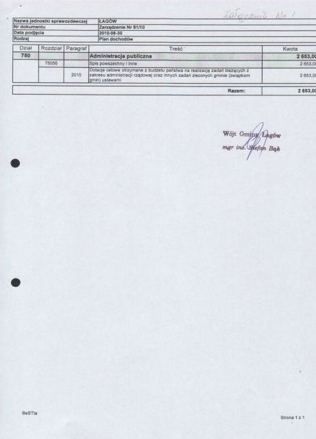 | Zarządzenie Nr 81/10 Wójta Gminy Łagów z dn. 30 sierpnia 2010 r. w sprawie: zmian w Budżecie gminy Łagów na rok 2010 | 2010-10-21 |