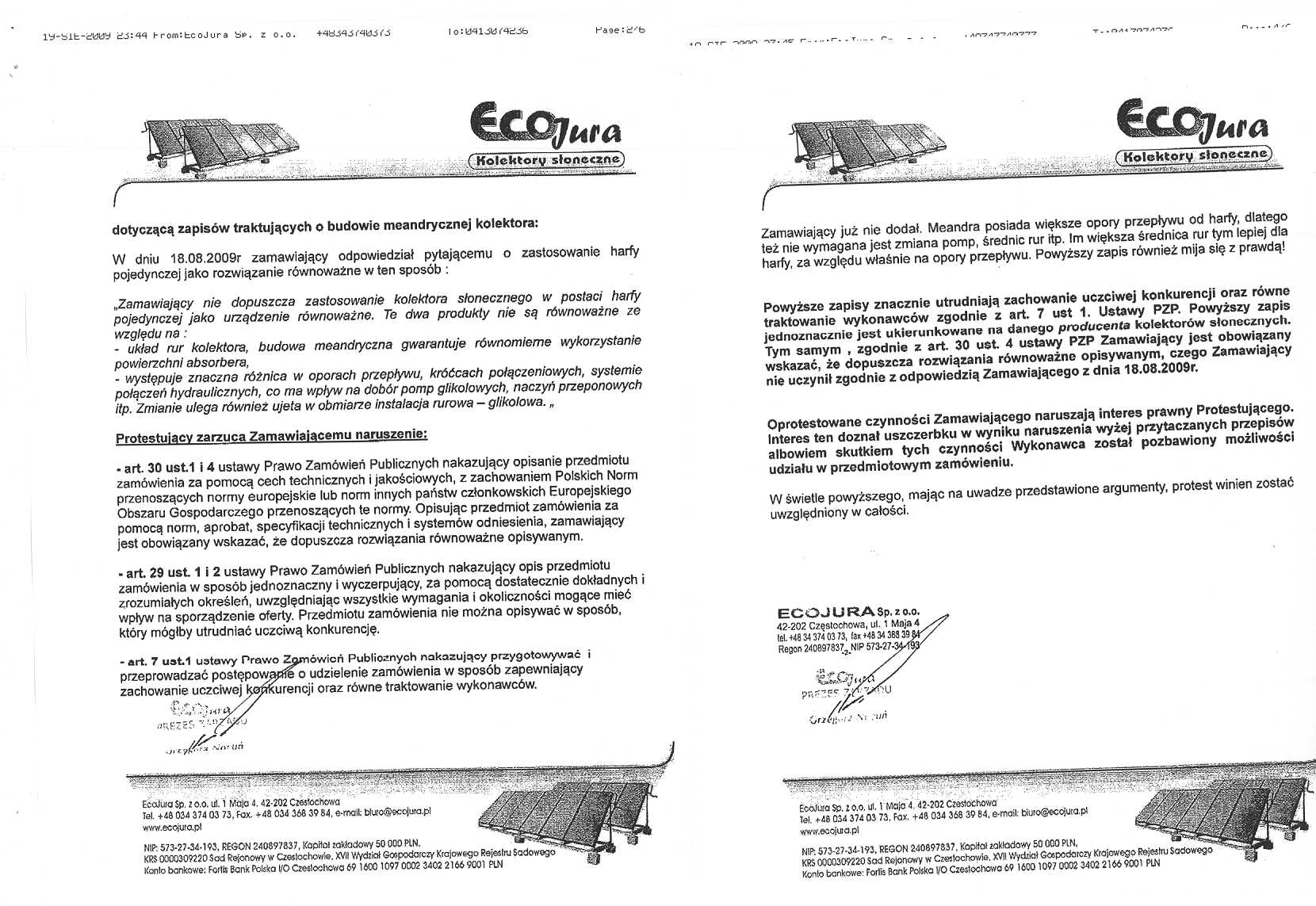 | Informacja o wpłynieciu protestu na zadanie „Wykorzystanie odnawialnych źródeł energii poprzez instalacje kolektorów słonecznych na budynkach szkół podstawowych w łagowie i Piotrowie” |